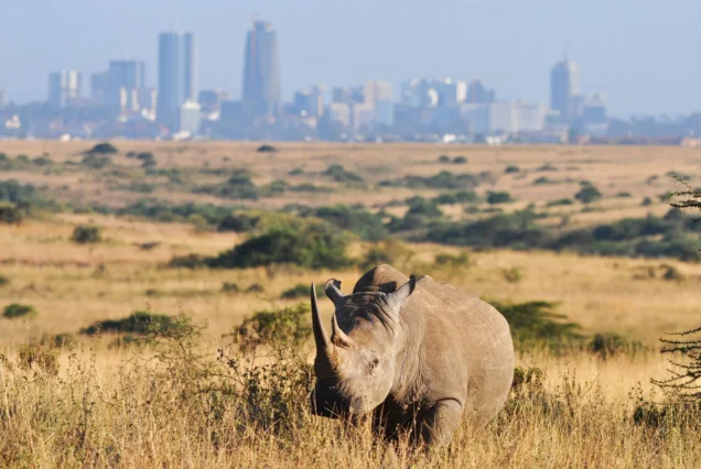 The tour to Nairobi National Park takes you to this unique wildlife sanctuary only 7 kms from the Nairobi bustling City Centre where you have chance to see 4 of the Big 5 (except the elephant) against the back drop of the city tall buildings. Nairobi National Park Kenya's first ever National park is a unique and unspoilt wildlife haven within sight of the city's skyline. Rhino, buffalo, cheetah, zebra, giraffe, lion and plenty of antelopes and gazelles can be seen roaming in this open plains country with a section of highland forest as well as stretches of broken bush country, deep, rocky valleys and gorges with scrub and long grass. Ornithologists catch with over 300 bird species including the Secretary bird, crowned cranes, vultures, peckers
